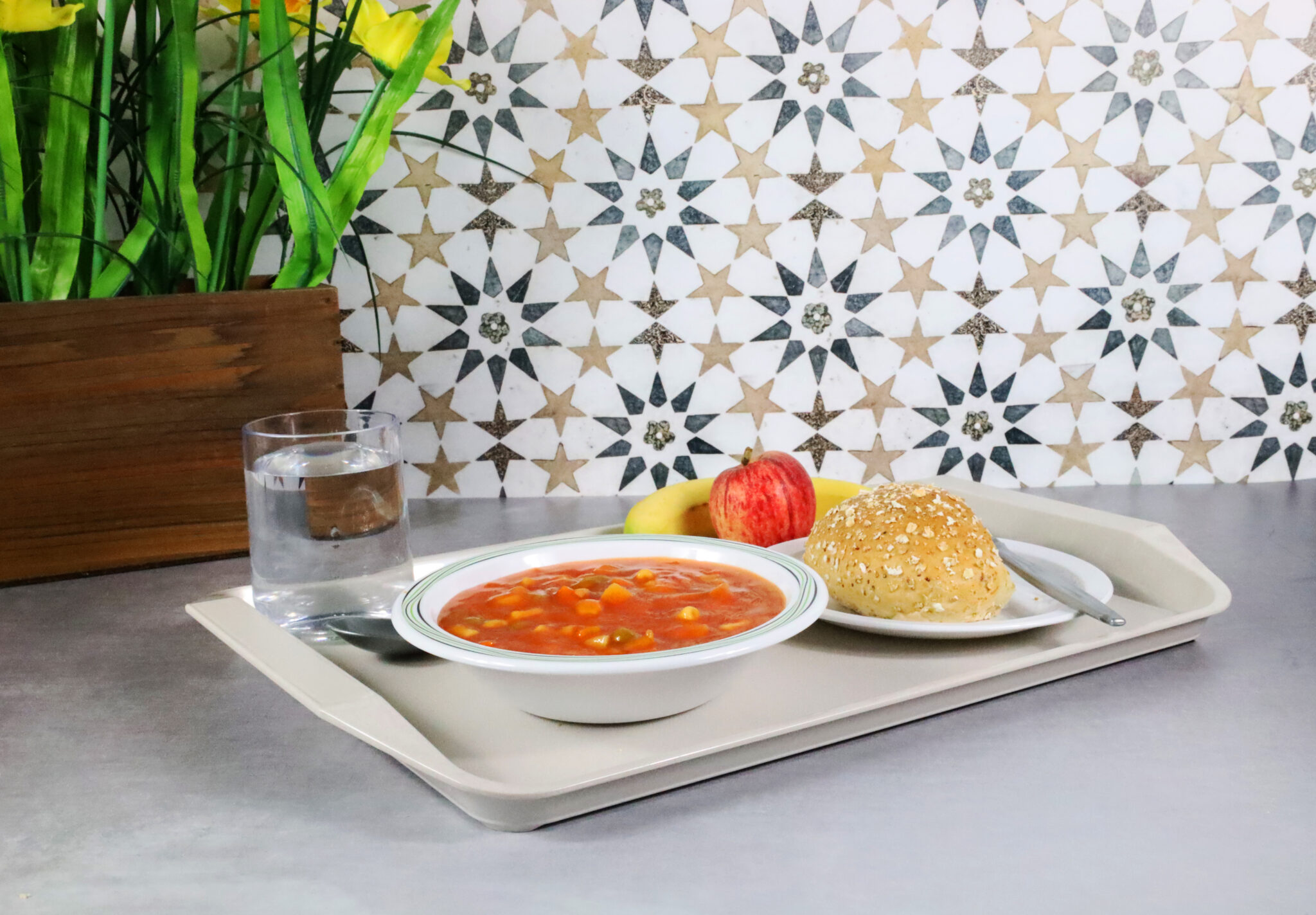 This large ABS Tray with handle is a great solution for easier and safer meal carrying.