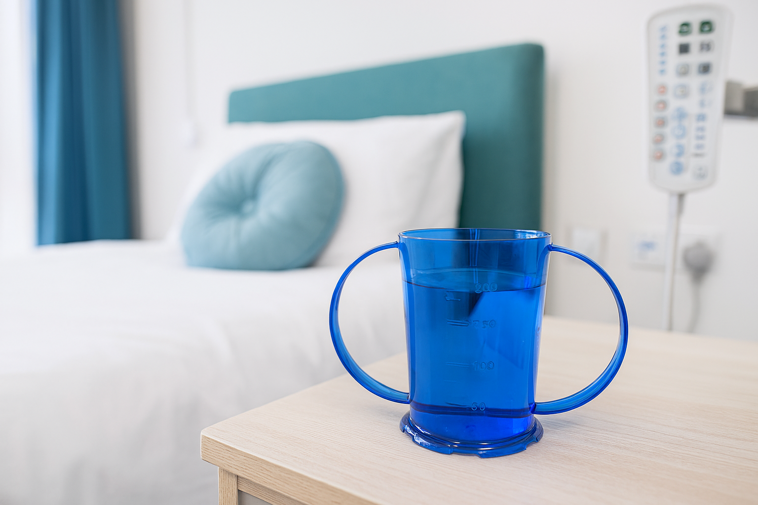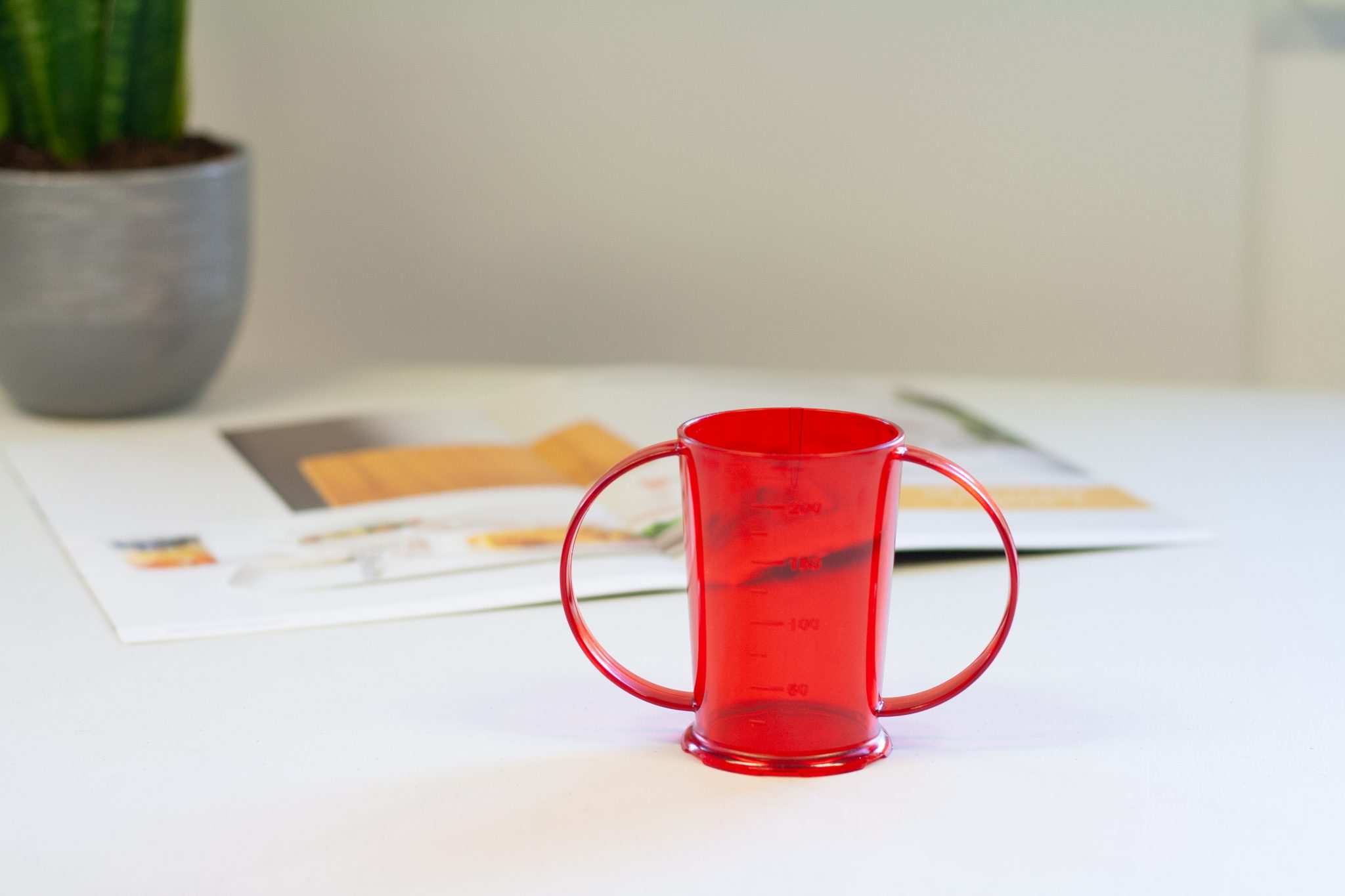The 2 round handles make the beaker very easy to hold and feedback has shown that it is ideal for people who need extra stability when drinking.