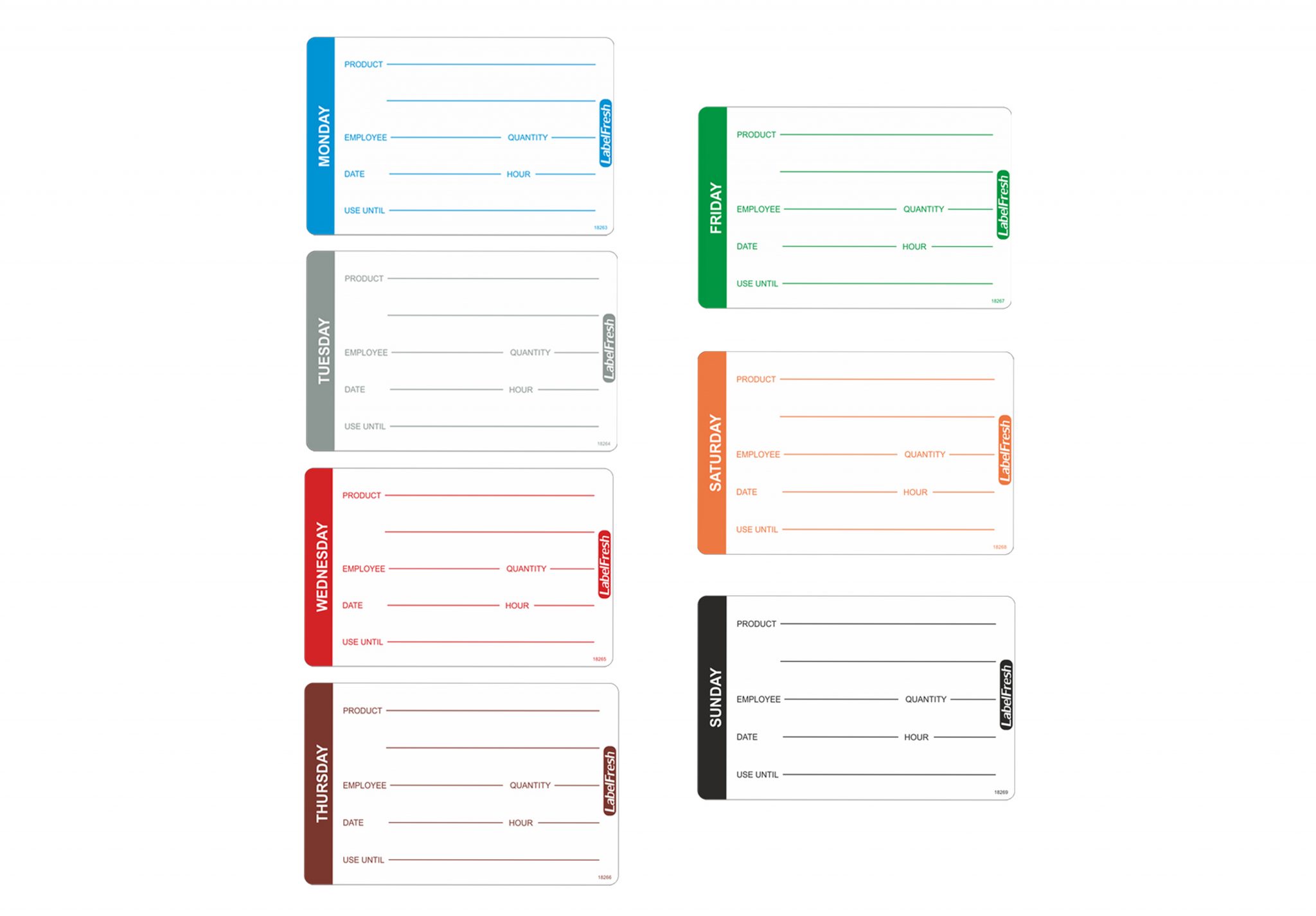 LabelFresh manufactures these quality weekly pro labels in Belgium.