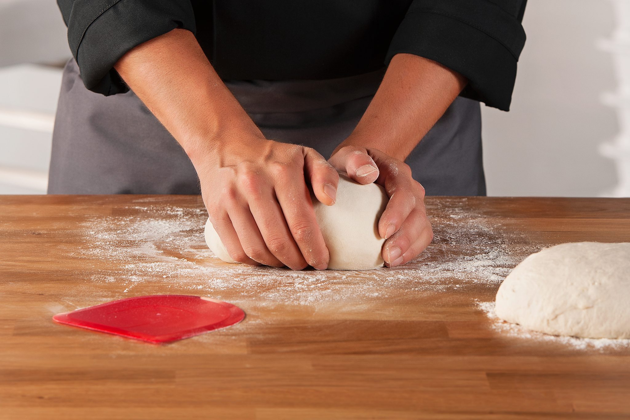 Perfect for dividing individual pieces of dough, the half round and half straight shape helps with scooping the needed amounts from larger food containers. Also designed to aid working the dough and scraping leftovers from the containers prior to cleaning.
