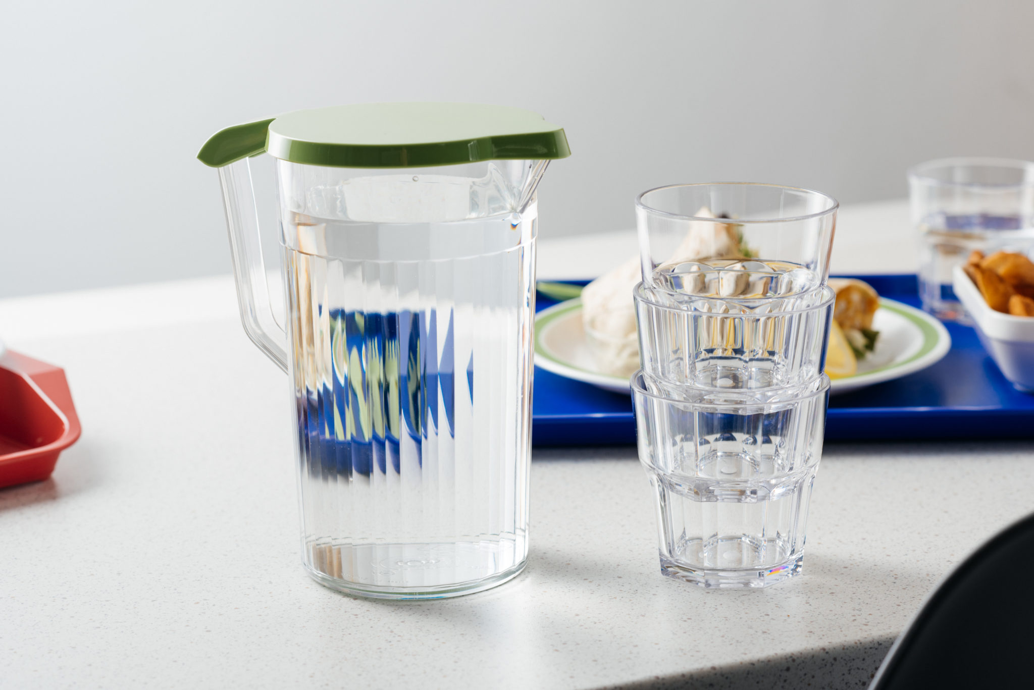 This lid is compatible with two of our polycarbonate jugs – a 1.1 litre jug (Product Code: 040) or 750ml graduated jug (Product Code: 089). The set can be completed with a selection of our polycarbonate tumblers that come in matching colours as well as various sizes depending on the need.