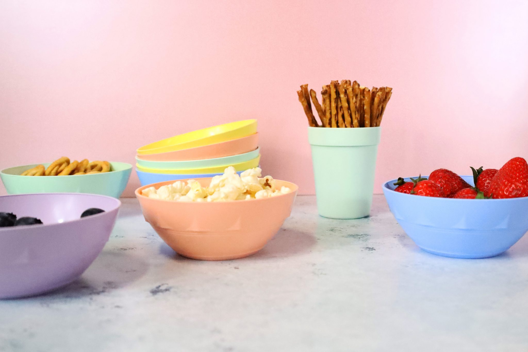 Our Pastel 12cm Bowl Pack comes with ten bowls in mixed colours – x2 of each colour – pastel green, blue, yellow, peach and lavender.