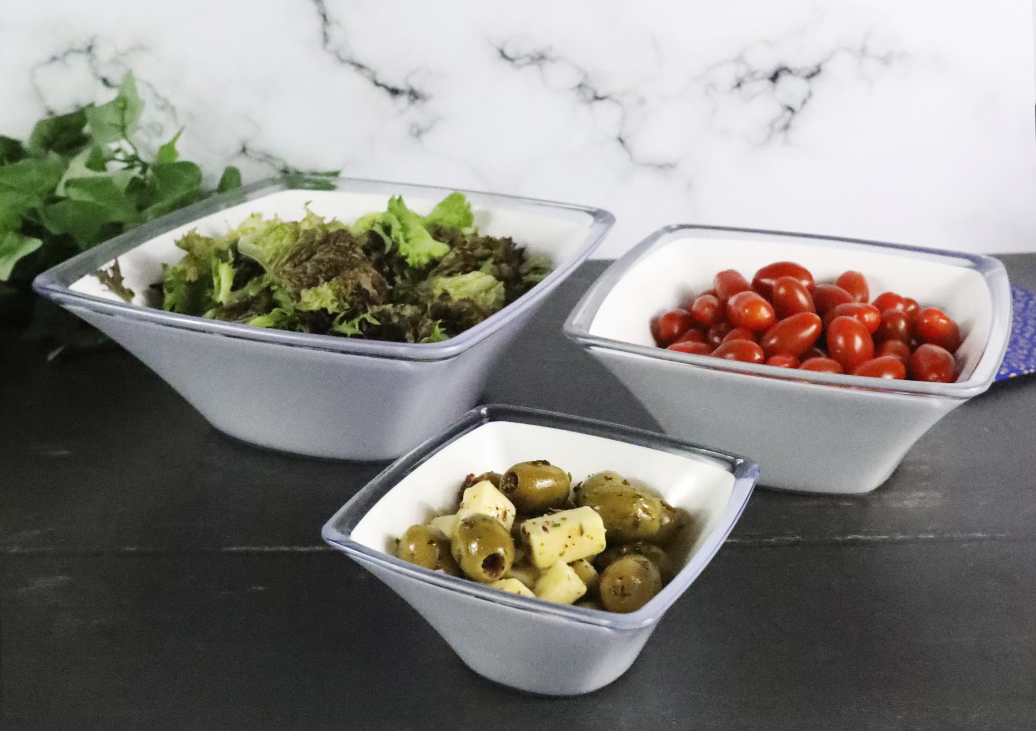 Our bowls are easy to clean, dishwasher and fridge safe. They are also reusable and 100% recyclable at the end of their life cycle. This makes them a sustainable tableware option and helps reduce single use plastics.