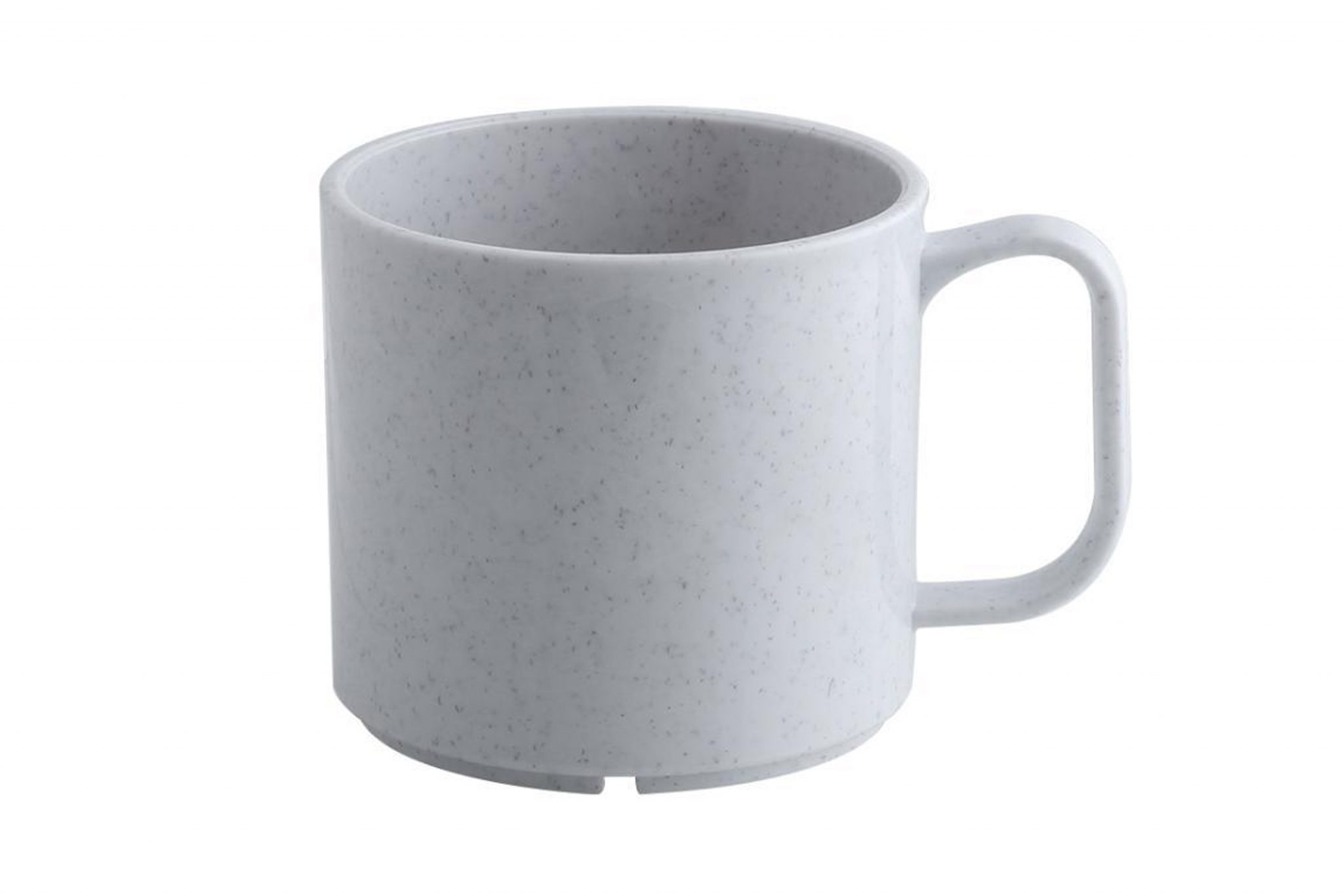 This 300ml mug with handle is perfect for serving both hot and cold drinks as well as portions of soup. Available in a choice of three colour options – a classic white or granite with a grey speckle effect and blue.